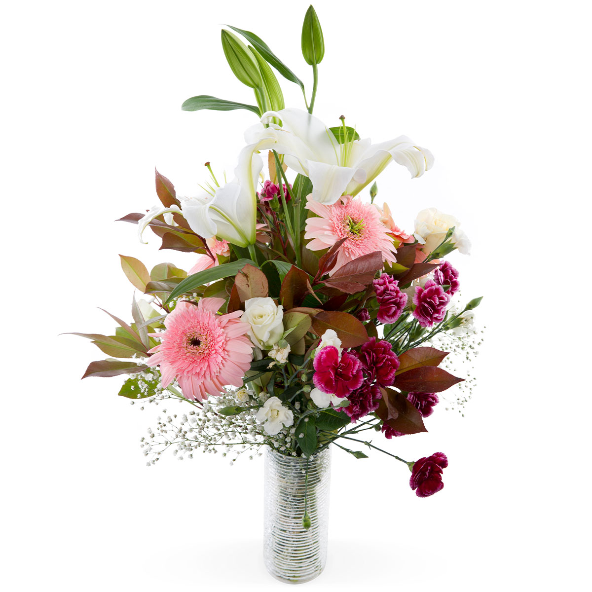 | Состав | Герберы, Гипсофила, Кустовые розы, Лилии, Розы |