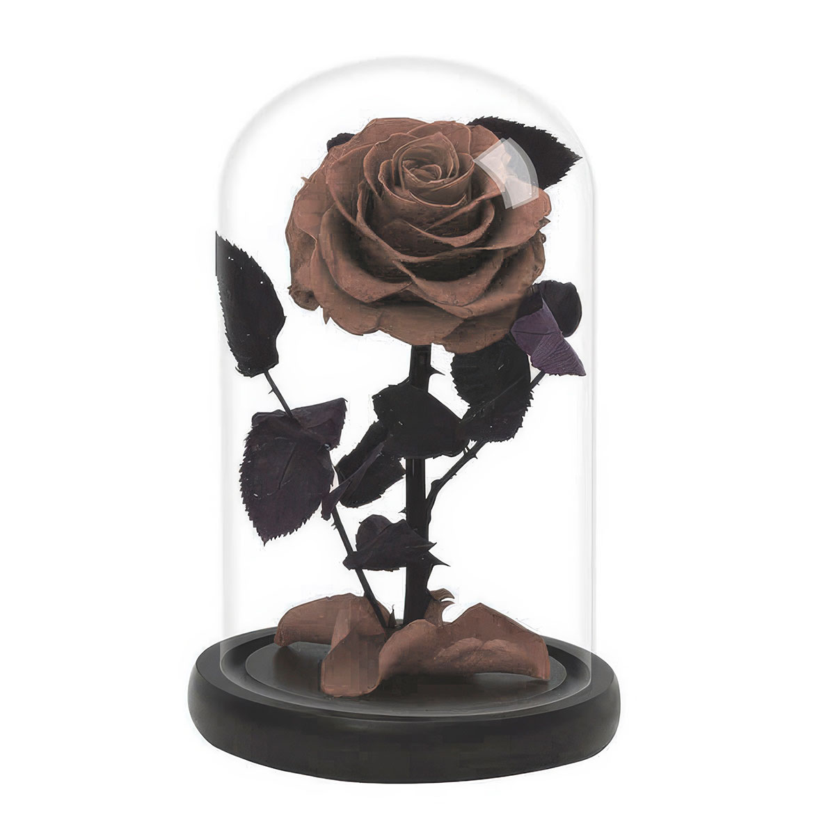 Стабилизированная вечная роза в колбе коричневая.