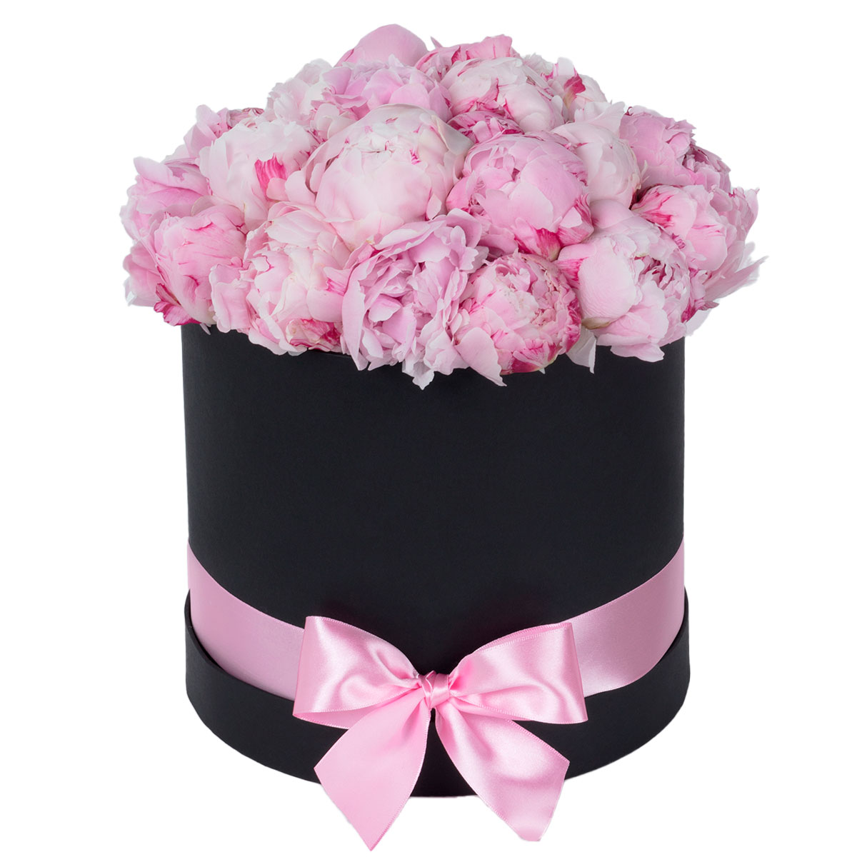 Пион розовый. Упаковка (шляпная коробка, квадратный бокс, коробка сердце, оазис)